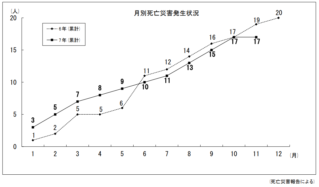 【出所】新潟労働局HP 死亡災害発生状況(業種別・月別)(令和7年11月末)より