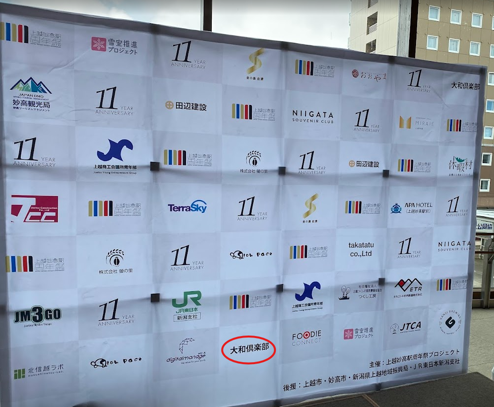 会場では上越妙高駅西口光のテラスに協賛企業、協賛団体の掲載がありました。
