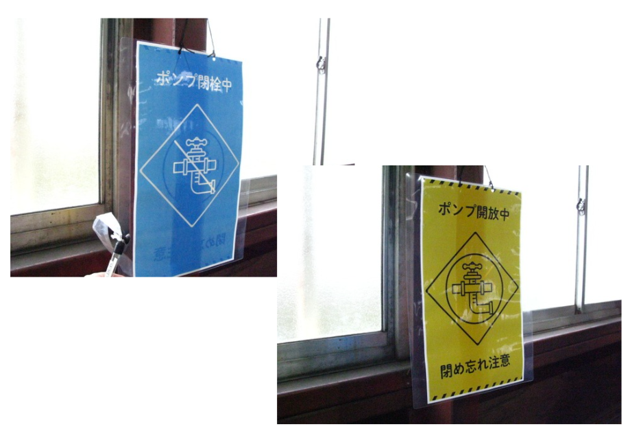 排水中であることが誰でもわかる状態を作るため、標識を設置しました。